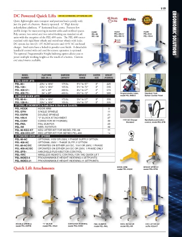 PEL-400-72� 24" x 20" 400 lb. 6½" to 72" 4" 560 Programmable Index, Standard Push