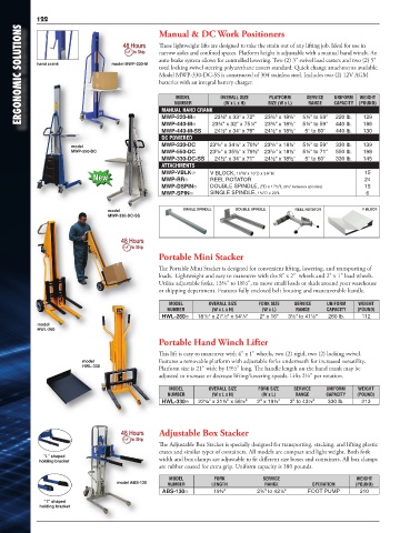 ERGONOMIC SOLUTIONS hand crank model MWP-220-M narrow aisles and confined spaces. Platform height is adjustable with a manual hand winch. An