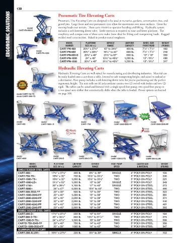 moving loads over terrain. These carts minimize operator bending and lifting. Hydraulic system