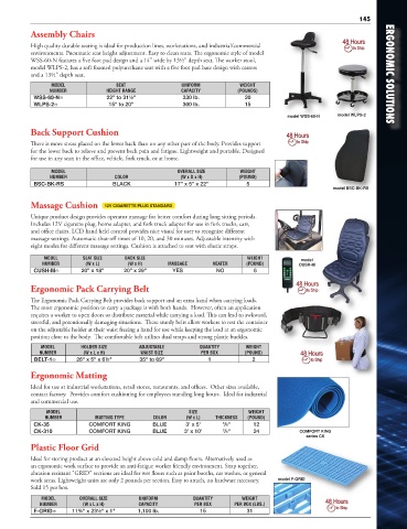 and a 13½" depth seat. ERGONOMIC SOLUTIONS