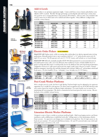 EOP-500� 20" x 43" 27" TO 118" 500 lb. 30 /16" x 49 /16" x 70 /8" 830