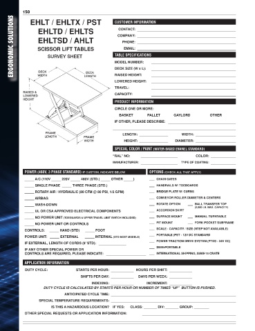 150 EHLT / EHLTX / PST CUSTOMER INFORMATION