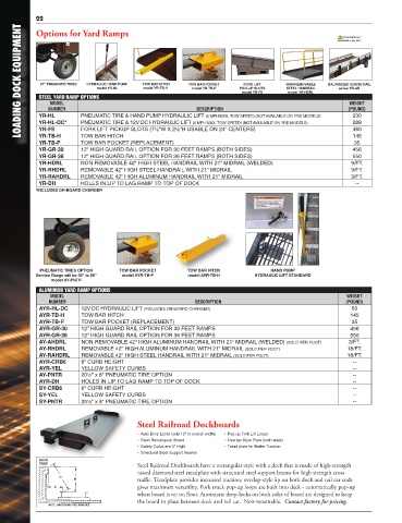 LOADING DOCK EQUIPMENT STEEL YARD RAMP OPTIONS model YR-HL TOW BAR HITCH TOW BAR POCKET PICK-UP SLOTS NON-REMOVABLE GALVANIZED GUARD RAIL