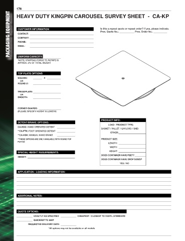 HEAVY DUTY KINGPIN CAROUSEL SURVEY SHEET - CA-KP