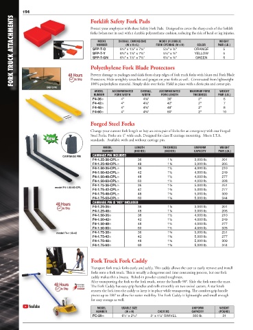 FORK TRUCK ATTACHMENTS forks (when not in use) with a durable polyurethane cushion, reducing the risk of head or leg injuries.