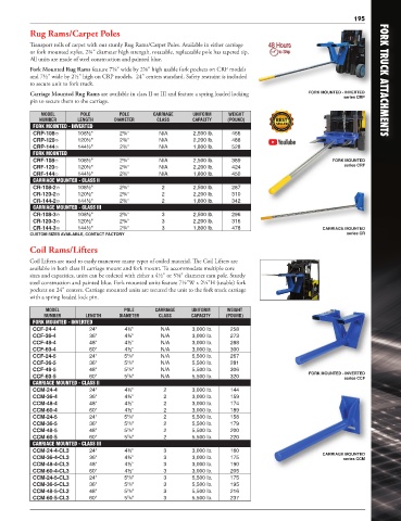 Carriage Mounted Rug Rams are available in class II or III and feature a spring loaded locking FORK MOUNTED - INVERTED