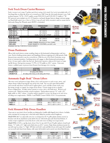foot long chain to allow the drum to be rotated up to 360° from the fork truck operator's seat. Fork