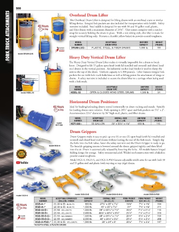 secured) and closed head steel drums without leaving the seat of the fork truck. Simply slip