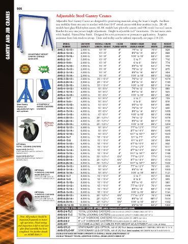 ADJUSTABLE STEEL GANTRY CRANE OPTIONS (WHEN PURCHASED WITH GANTRY CRANE)