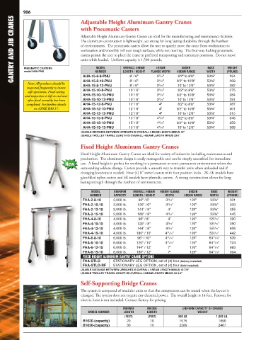 GANTRY AND JIB CRANES Adjustable Height Aluminum Gantry Cranes are ideal for the manufacturing and maintenance facilities.