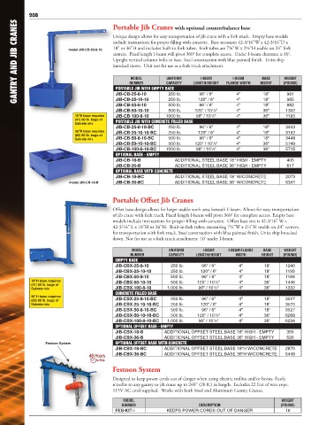 GANTRY AND JIB CRANES model JIB-CB-50-8-10 include instructions for proper filling with concrete. Base measures 42-3/16"W x 42-3/16"D x