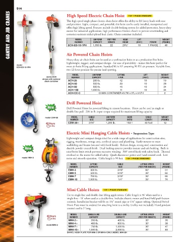 214 This high speed single phase electric chain hoist offers the ability to lift heavy loads with ease