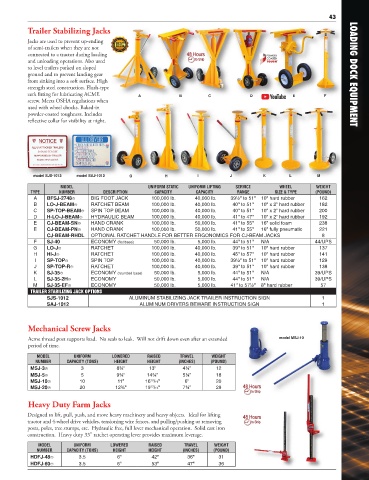 L SJ-35-2H� ECONOMY 50,000 lb. 5,000 lb. 44" to 51" N/A 39/UPS