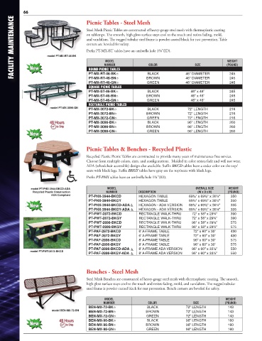 FACILITY MAINTENANCE FACILITIES MAINTENANCE model PT-MX-RT-46-BK Steel Mesh Picnic Tables are constructed of heavy-gauge steel mesh with thermoplastic coating (POUND)
