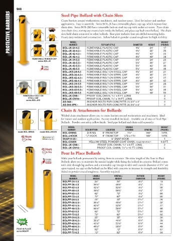 Bollards. Powder coat safety yellow finish. Steel pipe bollard and chain sold separately.