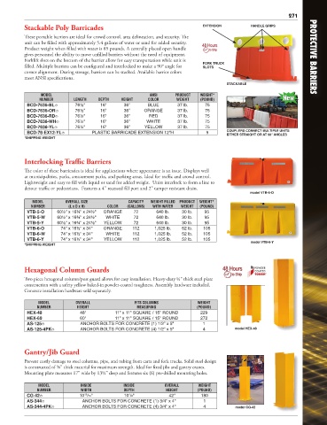 corner alignment. During storage, barriers can be stacked. Available barrier colors