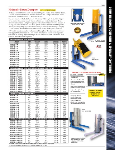 PORTABLE HYDRAULIC DRUM DUMPERS 45° DUMP ANGLE DRUM HANDLING EQUIPMENT & SPECIALTY CONTAINERS