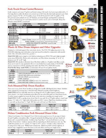 Deluxe Combination Fork Mounted Drum Lifter includes attachments to lift any type of drum;