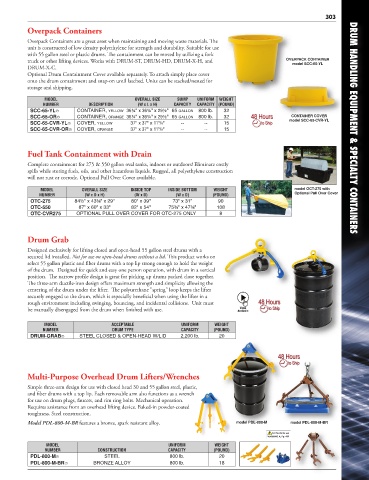 truck or other lifting devices. Works with DRUM-ST, DRUM-HD, DRUM-X-H, and OVERPACK CONTAINER