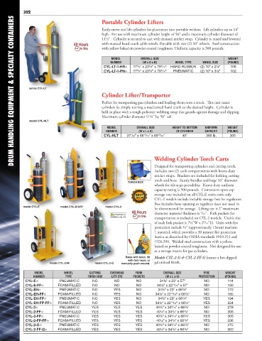Easily move and lift cylinders for placement into portable welders. Lift cylinders up to 14"
