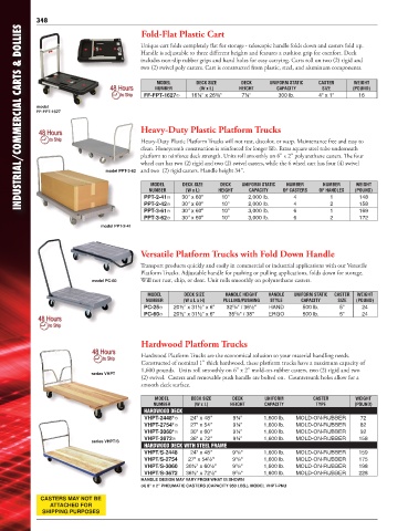 Platform Trucks. Adjustable handle for pushing or pulling applications, folds down for storage.