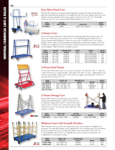 metal, you need the heavy-duty A-Frame Cart. A 7/8" high lip along the length of the cart
