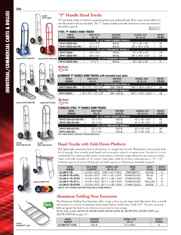 ALUMINUM "P" HANDLE HAND TRUCKS with extended nose plate