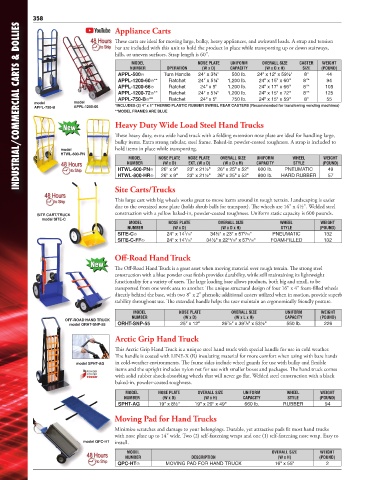 NUMBER (W x D) EXT. (W x D) (W x D x H) CAPACITY STYLE (POUND) Four Wheel Multi-Position Steel Hand Trucks