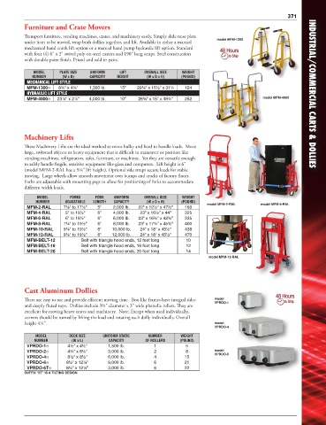 and deeply fluted tops. Dollies include 3½" diameter x 3" wide phenolic rollers. They are