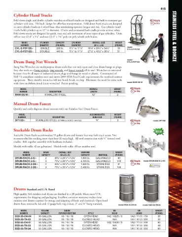 DRUM-RACK-3-SS 3 71½" x 29 /8" x 12¾" 2,400 lb. STAINLESS 106 WARNING A, Pg. 459