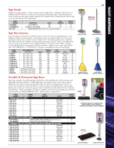 sleeved with high-density thermoplastic included with bases. Supports various signs (pages 80-92)