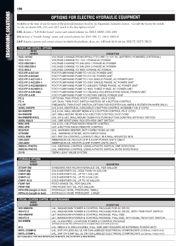 108 OPTIONS FOR ELECTRIC HYDRAULIC EQUIPMENT